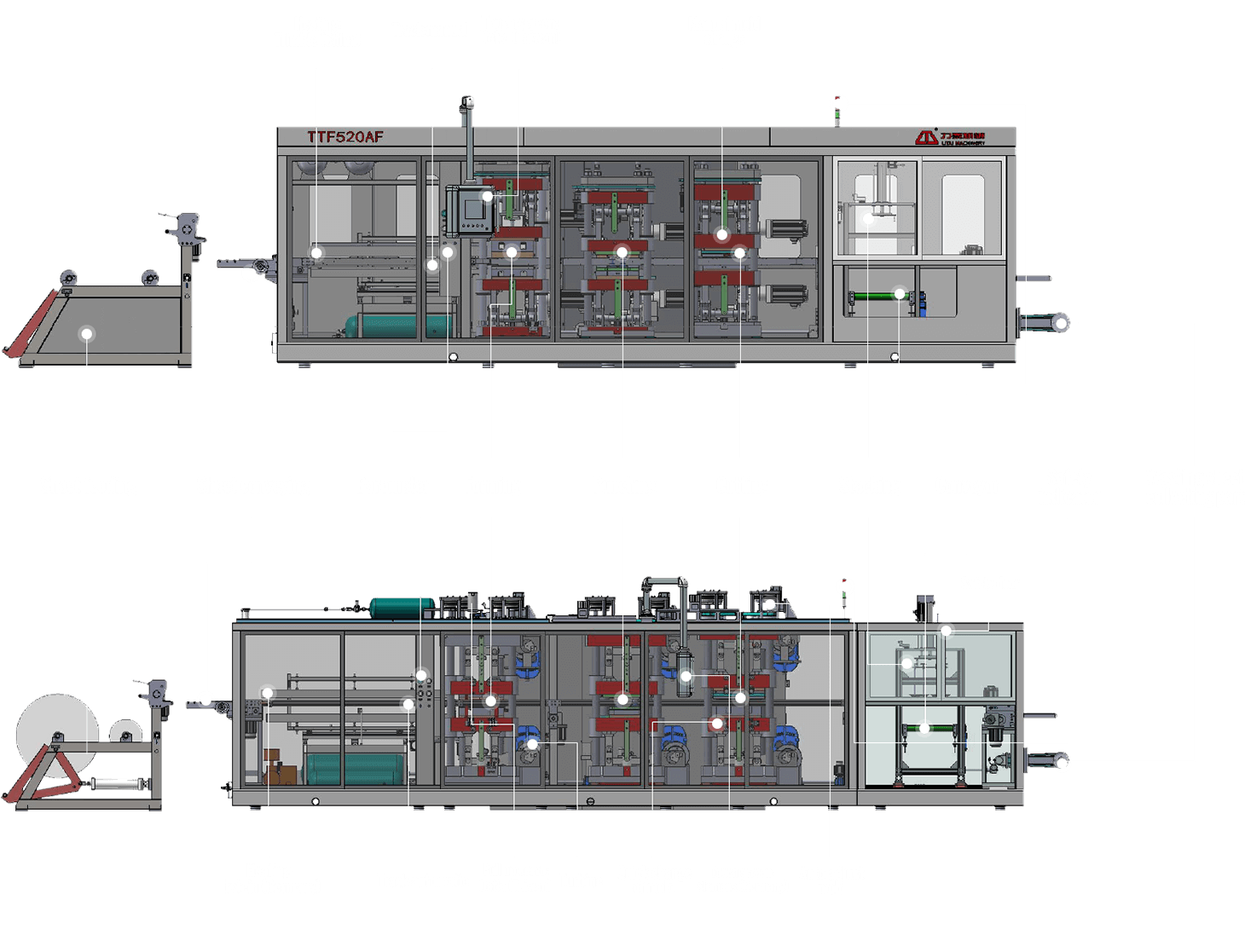 La machine de thermoformage entièrement automatique de la série TTF est notre dernière produit de base développé. La machine de thermoformage de plastique combine le formage, le poinçonnage, la découpe et l'empilage en processus. Pour la production de produits en plastique jetables. Convient à la plupart des clients demandés, il peut produire des plateaux en plastique, des conteneurs à clapet, des boîtes à lunch, des boîtes à fruits à trous latéraux, des couvercles, des plateaux à ampoule, des boîtes à fraises et myrtilles, etc. des conteneurs en plastique avec des trous. La machine est entièrement entraînée par un servomoteur. Fonctionnement stable, faible bruit, haute efficacité, haute qualité.