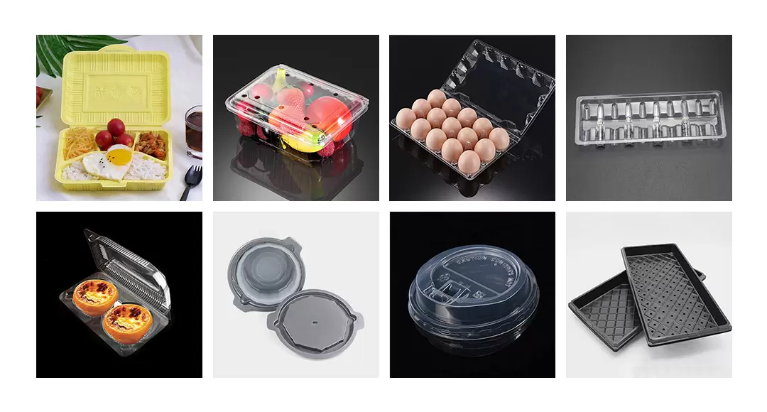 tels que des plateaux en plastique, des conteneurs à clapet, des boîtes à lunch, des boîtes à fruits à trous latéraux, des couvercles, des plateaux de pépinière, des boîtes à fraises et à myrtilles peuvent être produits.