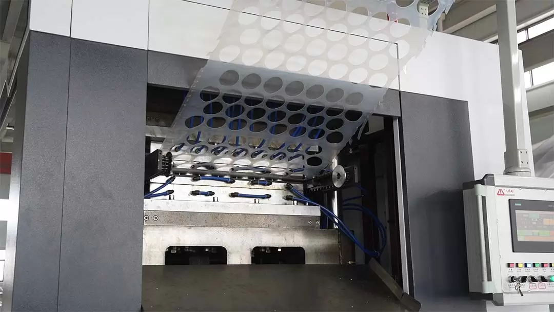 Chauffage des feuilles : Les feuilles de plastique (telles que PET, PP, PS, etc.) sont introduites dans la zone de chauffage et chauffées à la température de ramollissement appropriée grâce à un chauffage électrique ou à un système de chauffage infrarouge.