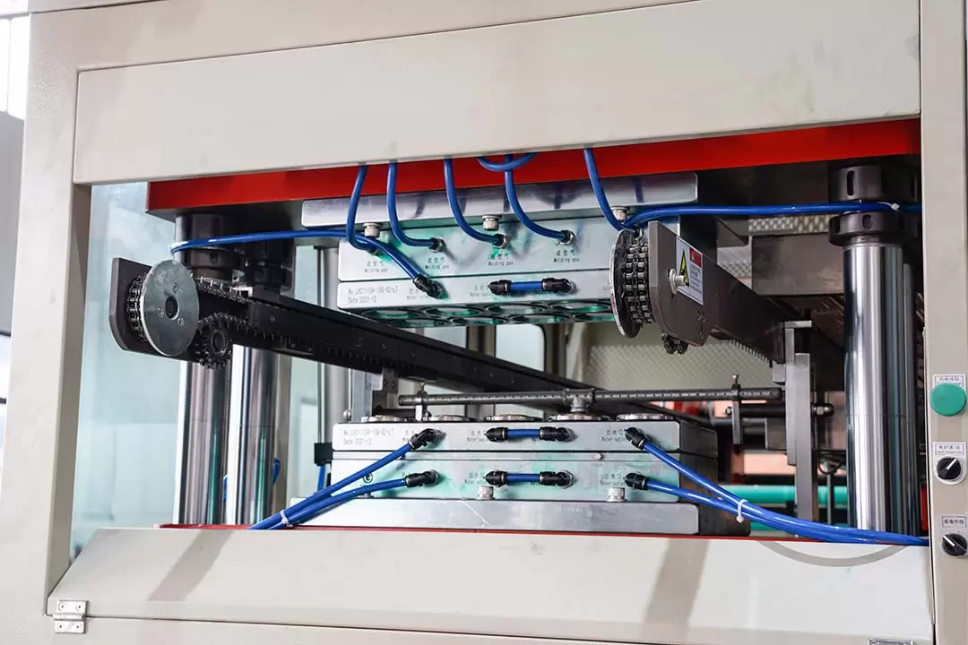 Plaques chauffantes : Le dispositif de chauffage d'une thermoformeuse est composé de plusieurs plaques chauffantes en céramique disposées en réseau. Un courant électrique génère de la chaleur pour chauffer la feuille ou la plaque de plastique à une température adaptée au formage. Les plaques chauffantes sont généralement réparties dans différentes zones de la machine afin d'assurer un chauffage uniforme.