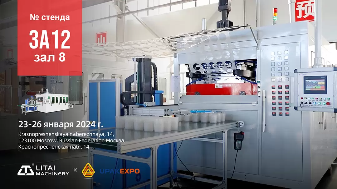 Du 23 au 26 janvier 2024, Litai Machinery se rendra à Krasnopresnenskaya Naberezhnaya, à Moscou, en Russie, pour participer au salon international RUPLASTICA 2024. Nous avons réservé un stand de 60 m² pour présenter nos équipements. Notre stand se trouve dans le hall 3, 83A12. Nous présenterons la thermoformeuse et le manipulateur TQC-750. Nous présenterons également le fonctionnement complet de l'équipement à nos clients, du démarrage à la production finale. Notre équipe sera également présente sur place pour répondre à vos questions et vous présenter Litai Machinery. Si nos équipements vous intéressent, n'hésitez pas à nous contacter. Notre équipe vous contactera sur place pour vous fournir toutes les informations nécessaires. La solution de thermoformage plastique qu'il vous faut !